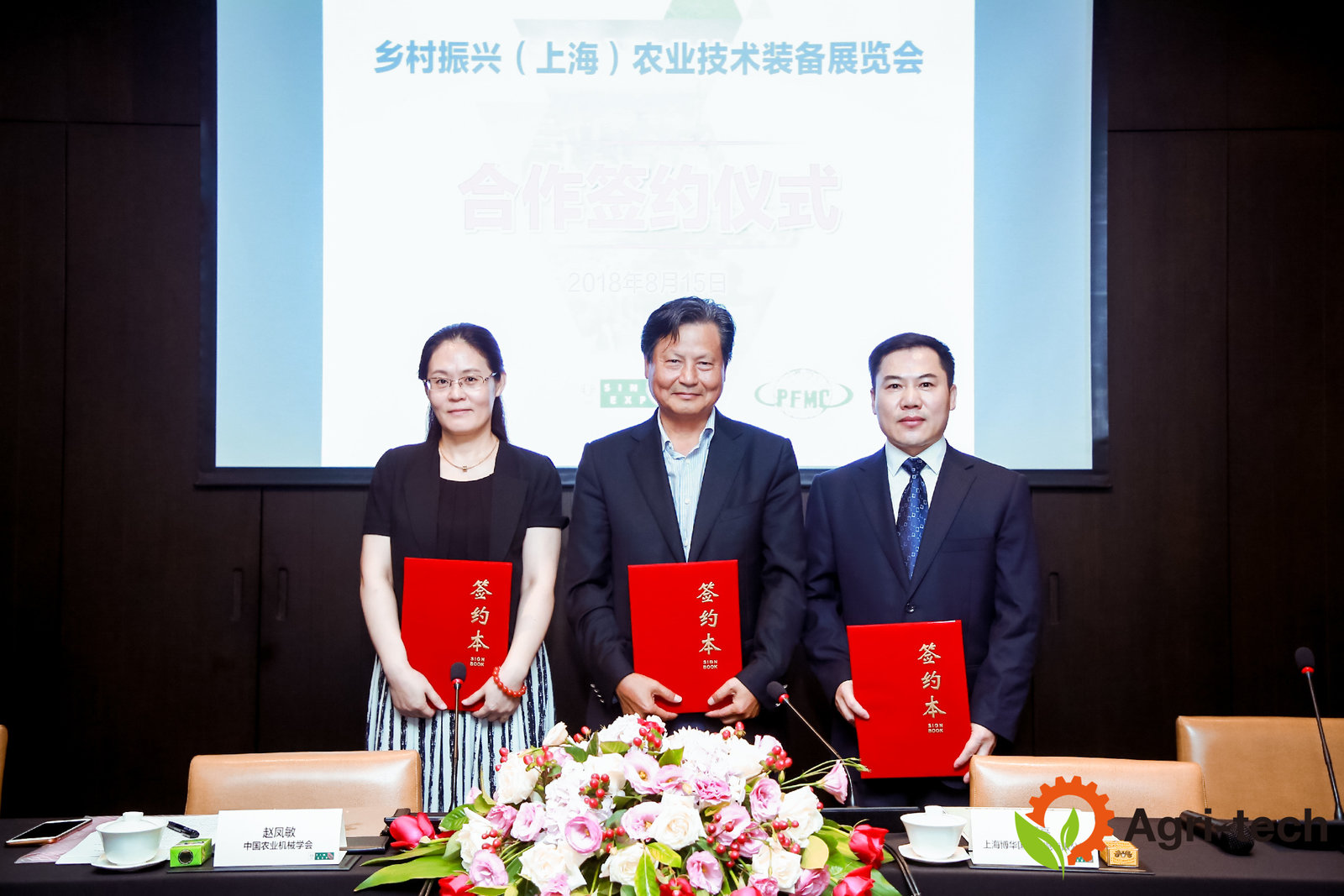 2018年8月15日,“乡村振兴(上海)农业技术装备展览会“合作签约仪式暨新闻发布会在北京宝格丽酒店举行。中国农业机械学会副秘书长赵凤敏、中国包装和食品机械有限公司副总经理周海军、上海博华国际展览有限公司执行董事、创始人王明亮先生代表各方签约,五十余家行业权威媒体和近百位业界代表参与了此次活动。